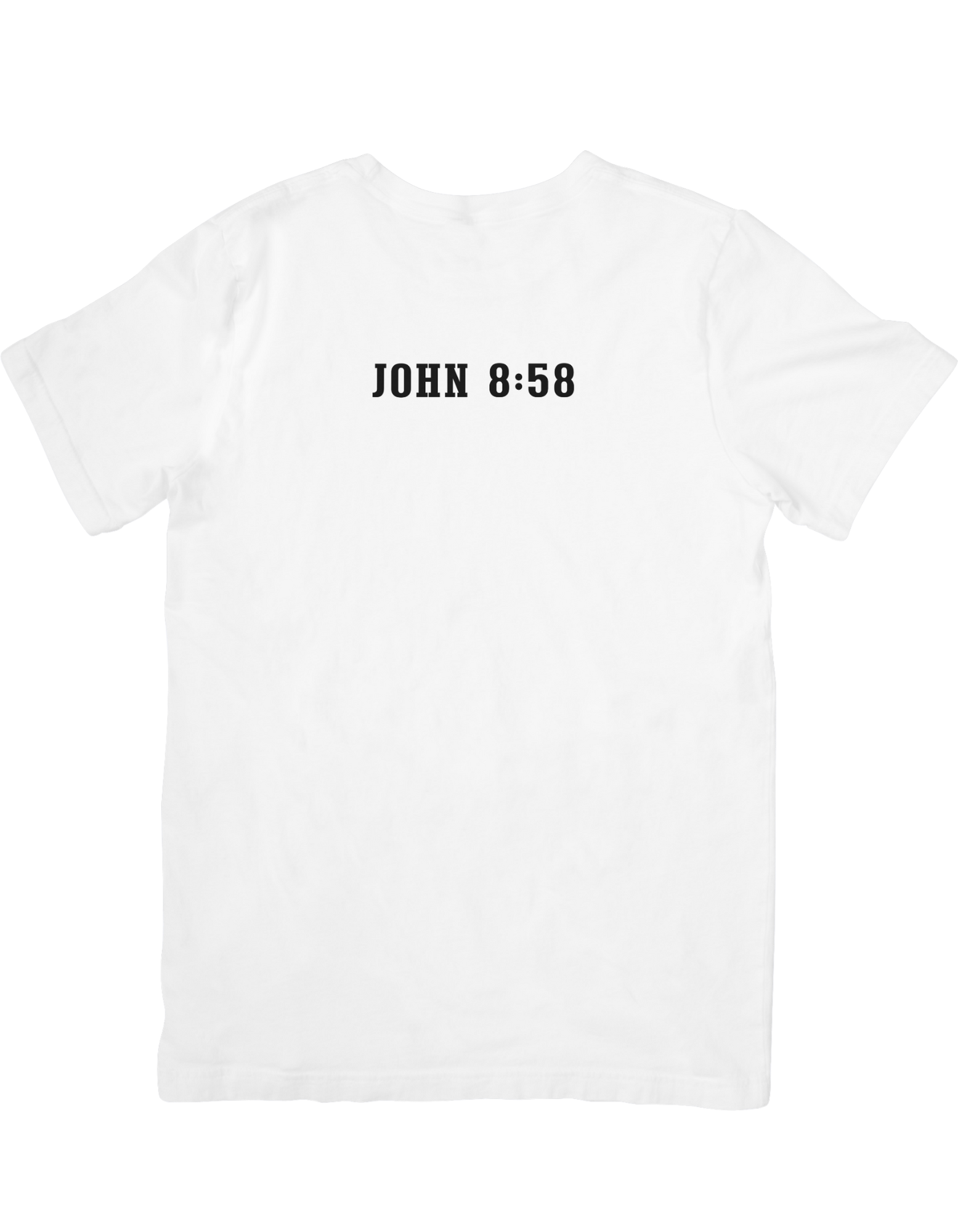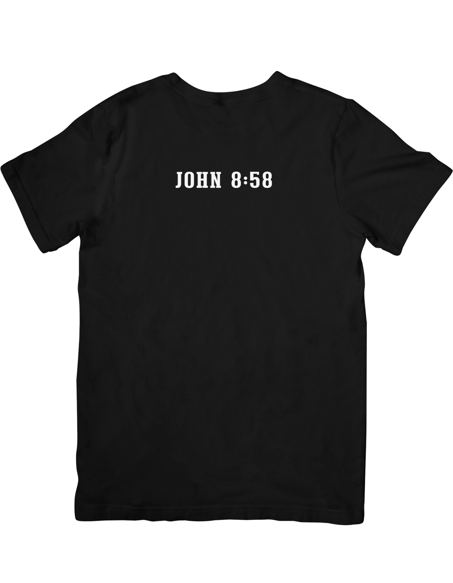 Jesus, established since the beginning T-shirt. The back of the T-Shirt has a verse John 8:58